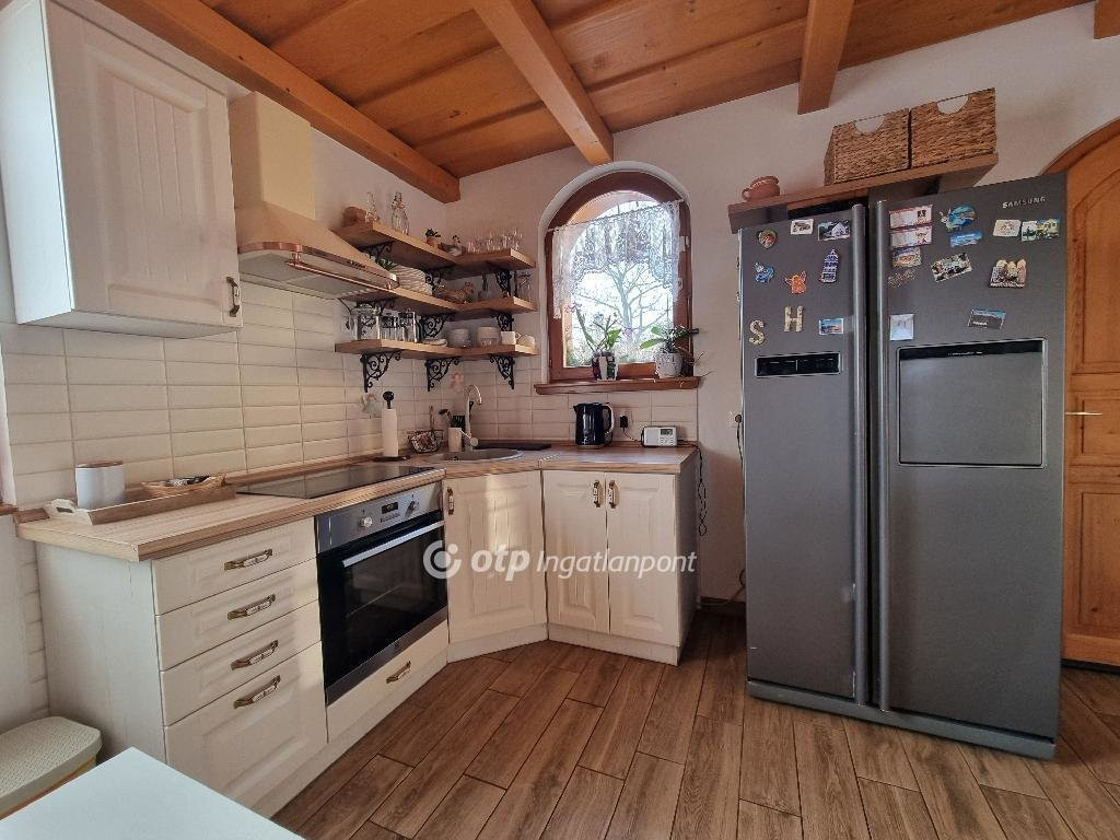 Bakonyjákó békés, szinte időtlen környezetében kínáljuk eladásra az 1999-ben épült, 148,1 m2-es családi házat 1200 m2 nagyságú telken. A ház elrendezése kényelmes és otthonos, mindenki megtalálja benne saját kuckóját: a felső szinten négy félszoba, egy fürdőszoba és egy külön WC és közlekedő található. Minden szobából csodás kilátásban gyönyörködhetünk. Az alsó szinten egy tágas nappali, konyha-étkező fogad bennünk az előszobából belépve, amelyhez fürdőszoba és praktikus kamra kapcsolódik. A ház további részében garázs kapott még helyet. A konyha modern, kiválóan felszerelt. A nappalihoz tágas terasz társul, ahonnan parkosított udvarra léphetünk, ahol dézsafürdőben vagy a kinti pihenőhelyen csodálhatjuk a Bakonyt. A 1200 m2-es udvar igazi gyöngyszem: egyik oldalát hatalmas, öreg tölgyfák szegélyezik, amelyek árnyékukkal és jelenlétükkel a régi vidéki porták hangulatát idézik.