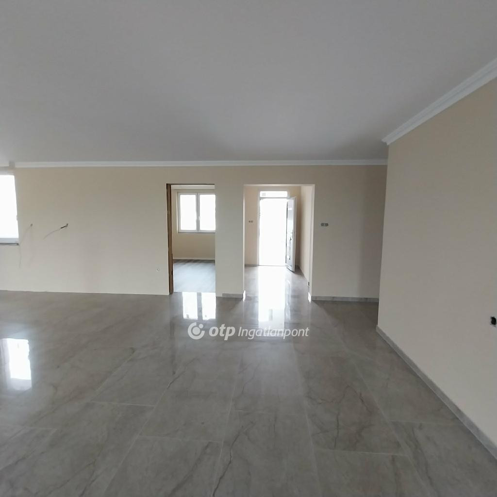 Tágas, 45,8 m2-es,- világos, amerikai konyhás nappali, 3 külön nyíló hálószoba, fürdőszoba + külön WC, mosókonyha, 16 nm-es fedett terasz, 18 m2-es a garázs. Kerítéssel, térkövezéssel!