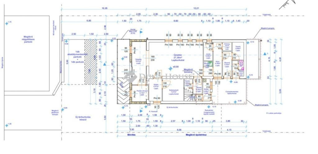 Parkolás: 46 parkolóhely az épület előtt, további parkolás 1520 méterre