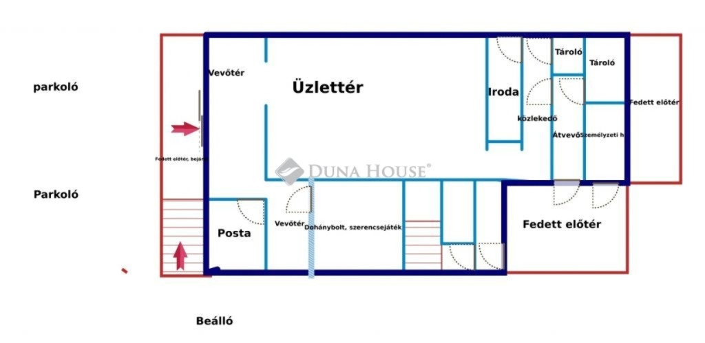 Földszint: kereskedelmi egység (élelmiszerbolt, posta, dohánybolt, lottózó)
