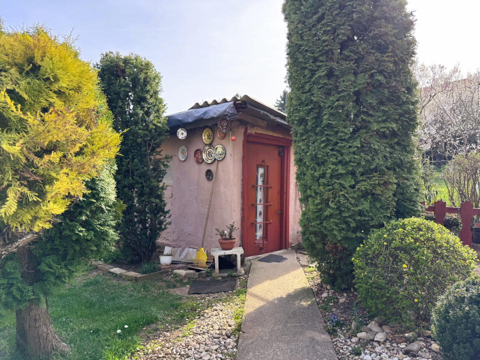 Folyamatosan gondozott kertjében található egy szerszámtároló melléképület.