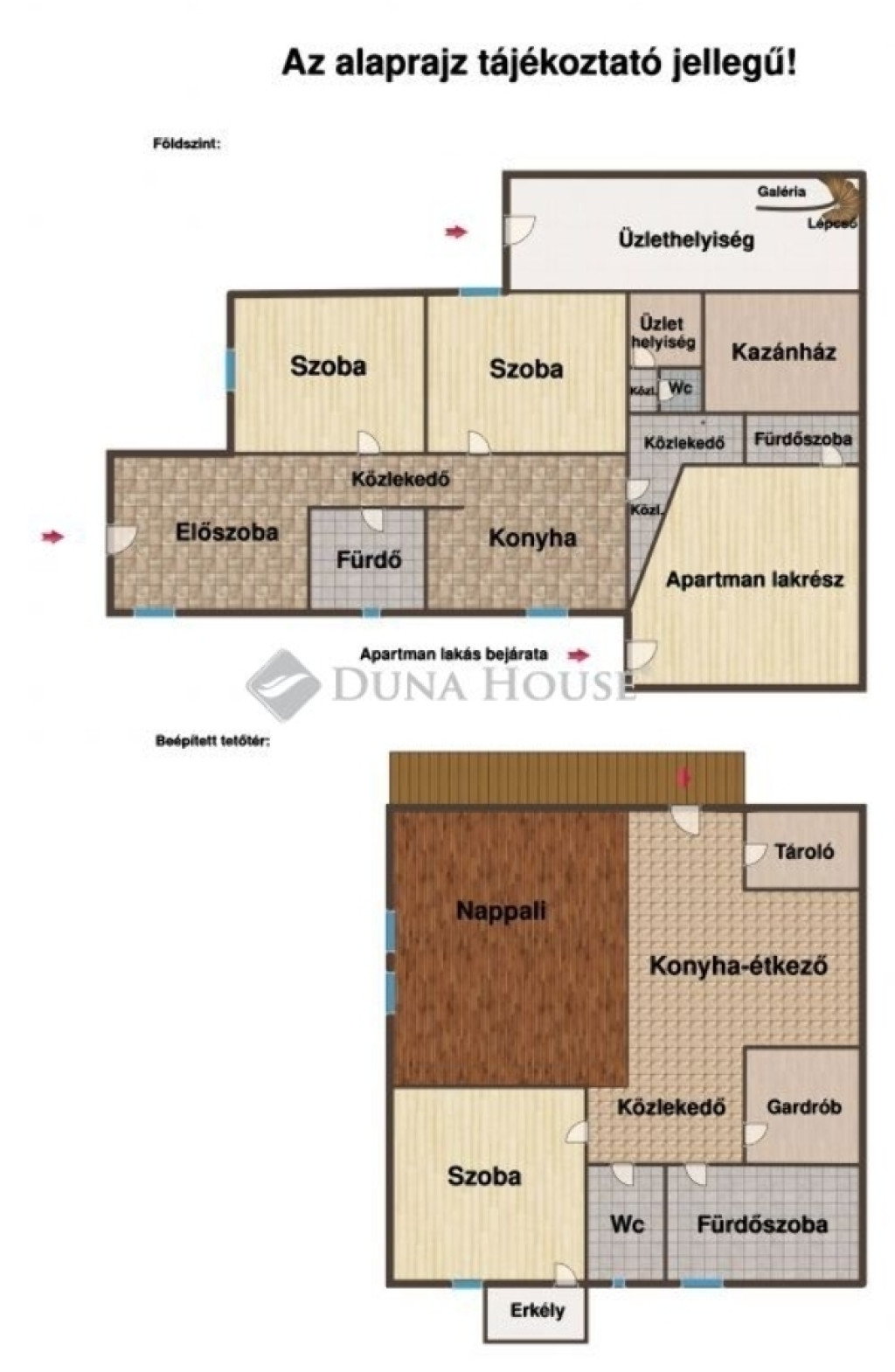 Üzlethelyiség (23,9 m² + 10 m² tetőtér): jelenleg fodrászüzletként működik, külön bejárattal, de belső átjárással is rendelkezik