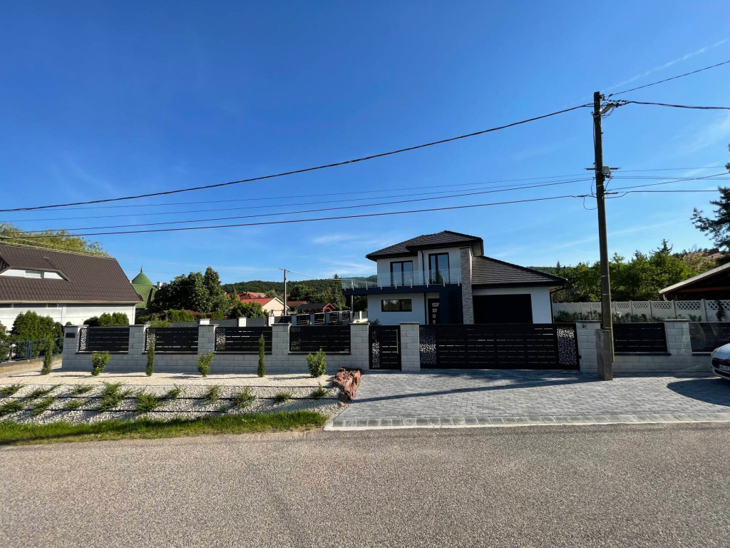 • Modern, biztonságos kerítés: lézervágott díszítőelemek, elektromos kapunyitásra előkészített rendszer