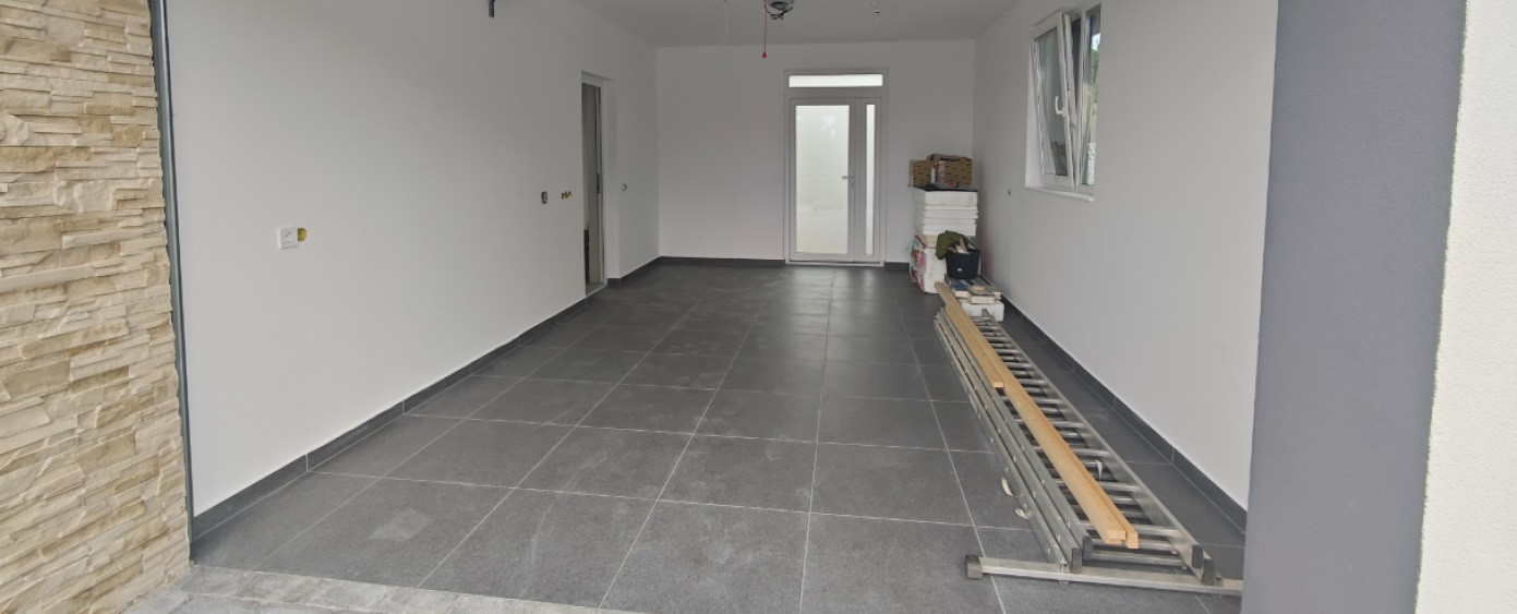 -padlófűtéssel ellátott garázs , előszobán keresztül közvetlen kapcsolattal a lakóhelyiséggel ,
