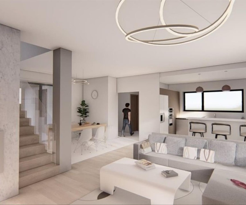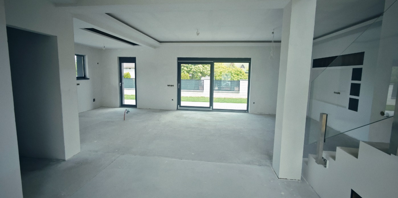 A modern stílusban épülő ingatlan földszintjén kialakításra került hálószoba fürdőszobával egy igen tágas nappali , étkező