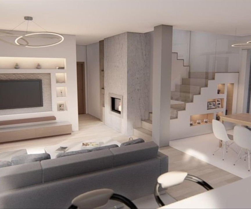 A földszinti nappaliban kandalló és klíma is beszerelésre kerül.