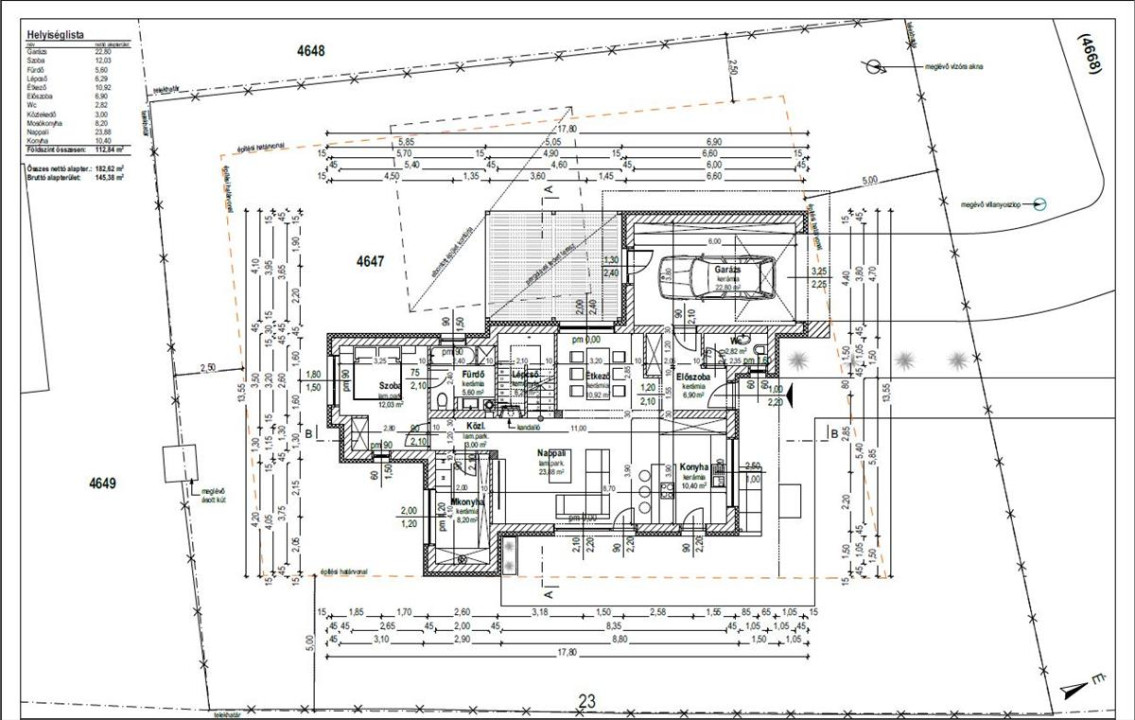 Hasznos összalapterülete 183 m2, a hozzá tartozó telek nagysága 727 m2.