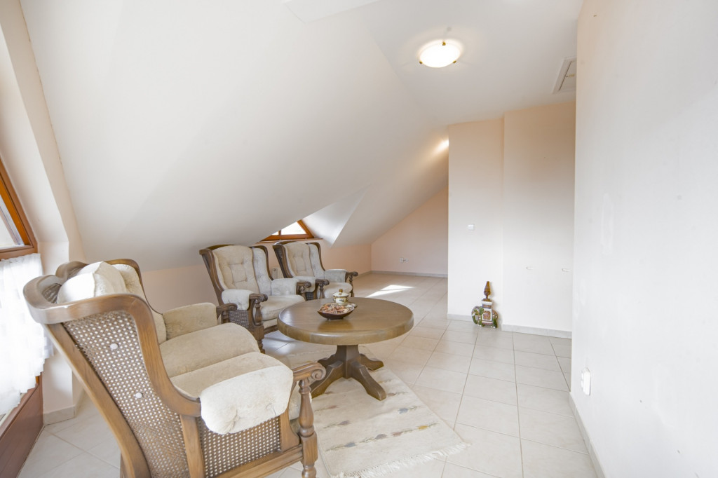 A két nagyméretű terasz/ 10 m2 és 25 m2/ és a gondozott kert a mindennapi pihenéshez és a kerti partikhoz is kiváló helyszínt biztosítanak.