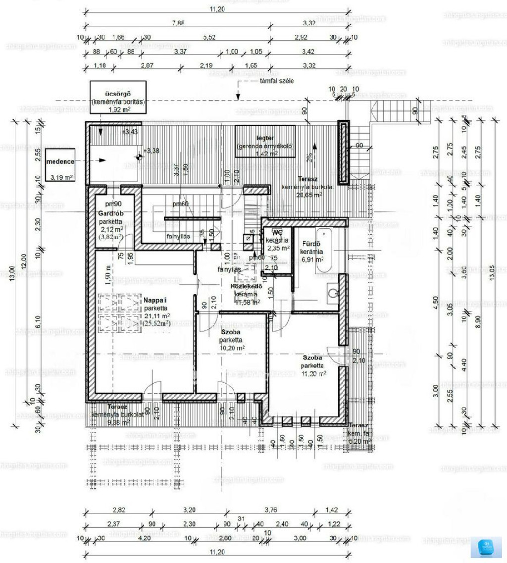 -Minden helyiségből kijárat a három oldalon körbefutó körteraszra