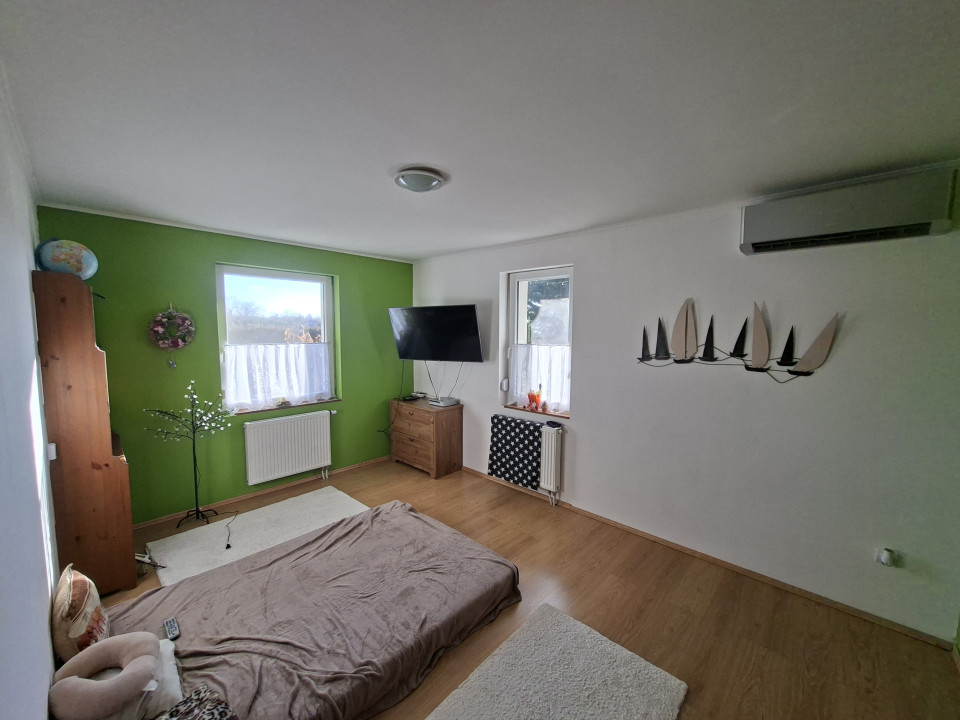 A ház 2010-ben épült, melyben található hét egész és három fél szoba a földszinten és az emeleten, két konyha, spájz, három fürdőszoba WC-vel plusz két különálló WC, két gardrób szoba, mosókonyha, nagy garázs, kazánház.