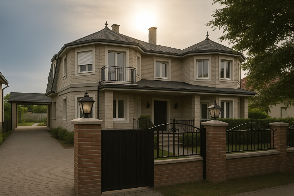 A 2000-es években épült ( 1388 m2 telken) könnyűszerkezetes ingatlant a letisztult, egyszerű formák mellett praktikusság, tágas, jól funkcionáló helyiségek jellemzik. Az oszlopos bejárati portál, a hozzá tartozó biztonsági bejárati ajtó, a stílusra jellemző masszív falépcső, sok gardrób.
