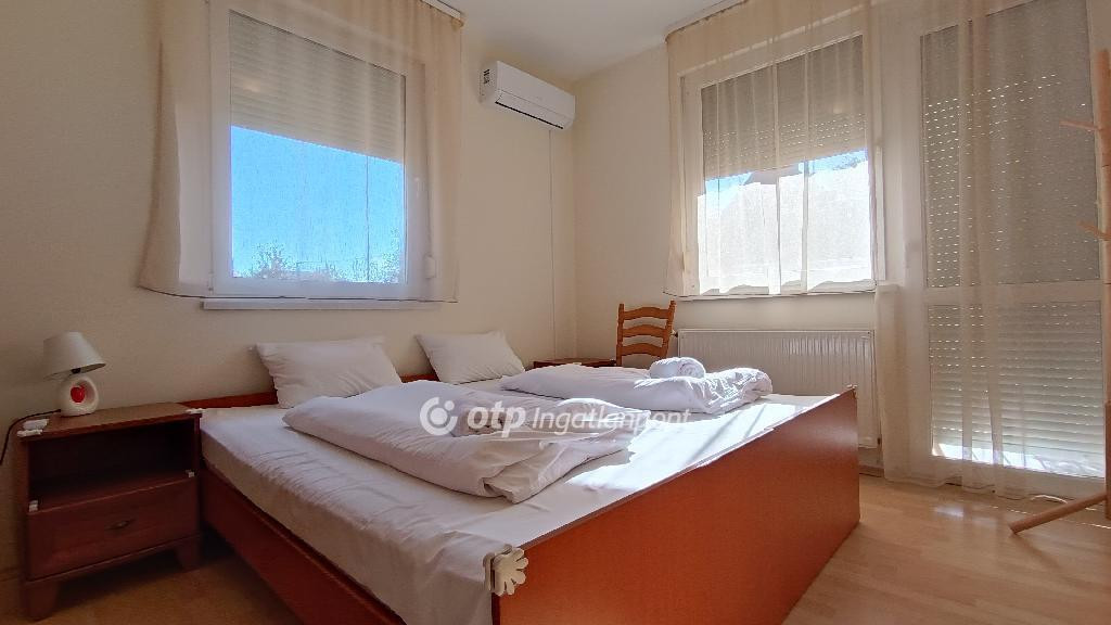 Eladó egy 4 apartmanos apartmanház földszinti 57 m2-es lakása. Az apartmanház minden lakása kétszobás, szobánként klimatizált. Az apartmanok világosak, napfényesek, de a nyári forróság ellen redőnyökkel szerelt. Fűtésük központi gázkazánnal történik. Mindegyik szobához tartozik egy zuhanyzós fürdőszoba és egy terasz. A lakóterek központi helyisége az amerikai konyhás nappali.