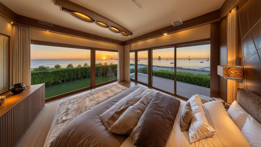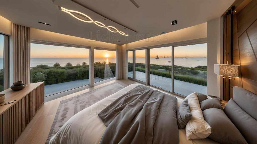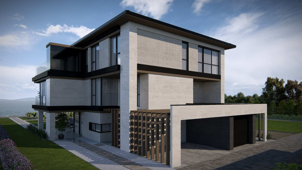 A vízparti házat modern dizájn, elegáns kivitelezés, napfényes terek, magas minőségű anyagok, intelligens otthonmegoldások és a modern technológia jellemzi.