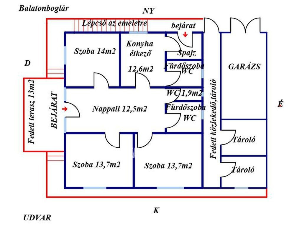 Balatonboglár város, Fonyódi járásban, nagy családi ház eladó. Az M7 autópálya pár percre van a várostól. A Balaton déli partján, Balatonlelle és Fonyód között található. Mintegy 6000 lakossal, egy kis kikötővel és vasútállomással is rendelkezik. A város központjához közel, egy bevásárló központ mellett , pár percre, csendes utcában található ez a szép nagy ingatlan, melyben 2 összkomfortos lakás található. A közelben minden közszolgáltatás rendelkezésre áll. A Balatonpart szabadstrand, 5-6 perc sétával elérhető. A ház, lakásinak elrendezése a helyiségek, kiváló, praktikus, az alaprajzon láthatók. Mind két lakás külön mérőórákkal rendelkezik, két család lakhatására, vagy albérletnek , kiadás céljára is ideális. Tágas, napfényes, igényes lakókörnyezetet biztosít majd, az itt élők számára . Az udvaron sok termő gyümölcsfa, egész nyáron gyümölccsel látja el a tulajdonosokat. Található itt egy grillező, bográcsozó hely is. A garázs az udvarról megközelíthető, a garázs mögött, két helység, mely akár egy kis lakrésznek is kialakítható ( régebben nyári lakrészként működött ) . Jelenleg tárolónak használják. Amennyiben felkeltettem érdeklődését, kérem hívjon az adott számon, hogy megmutathassam ezt a jó helyen , jó adottságokkal rendelkező családi házat, melyben két összkomfortos lakás található. Hitel esetén az OTP Bank szakmai hátterével, gyors, szakszerű, ingyenes ügyintézéssel állunk rendelkezésére. Az OTP Ingatlanpont kizárólagos ajánlásával.