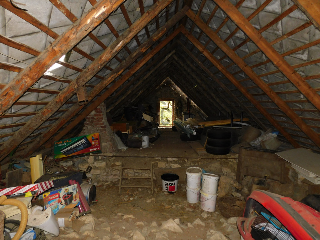 A ház padlástere tagolt elosztású, amely felújítás után teljese egészében beépíthető, külön szobákra osztható.
