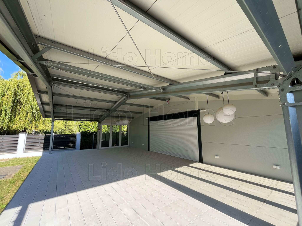 Ez a letisztult formavilágú, kortárs lakóház a legmodernebb építészeti megoldások és a természetközeli életérzés ötvözete. A feszített acélszerkezetes technológiának köszönhetően a ház szerkezete nemcsak időtálló és rendkívül stabil, hanem lehetővé teszi a tágas, oszlopmentes belső terek kialakítását is, amelyek szabadon formálhatók az egyéni igények szerint.