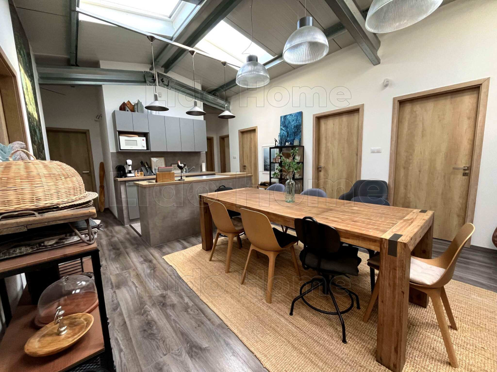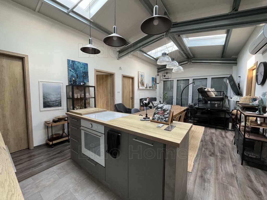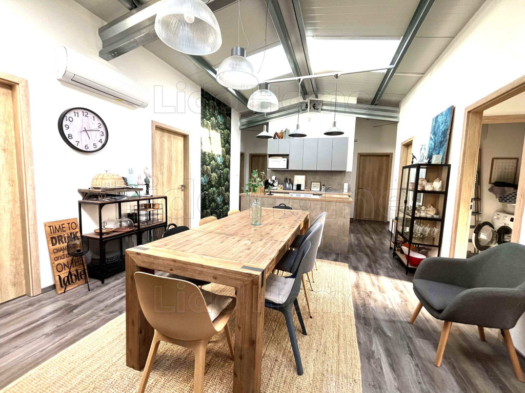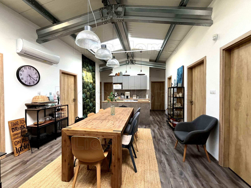 - 5 kényelmes méretű lakószobát kínál, amelyek mindegyike külön bejárattal és természetes megvilágítással rendelkezik. A nappali és étkező egy légtérben helyezkedik el, közvetlen kapcsolatban a 60 m2-es terasszal, így ideális közösségi térként funkcionál mind a mindennapokban, mind vendégfogadáskor.