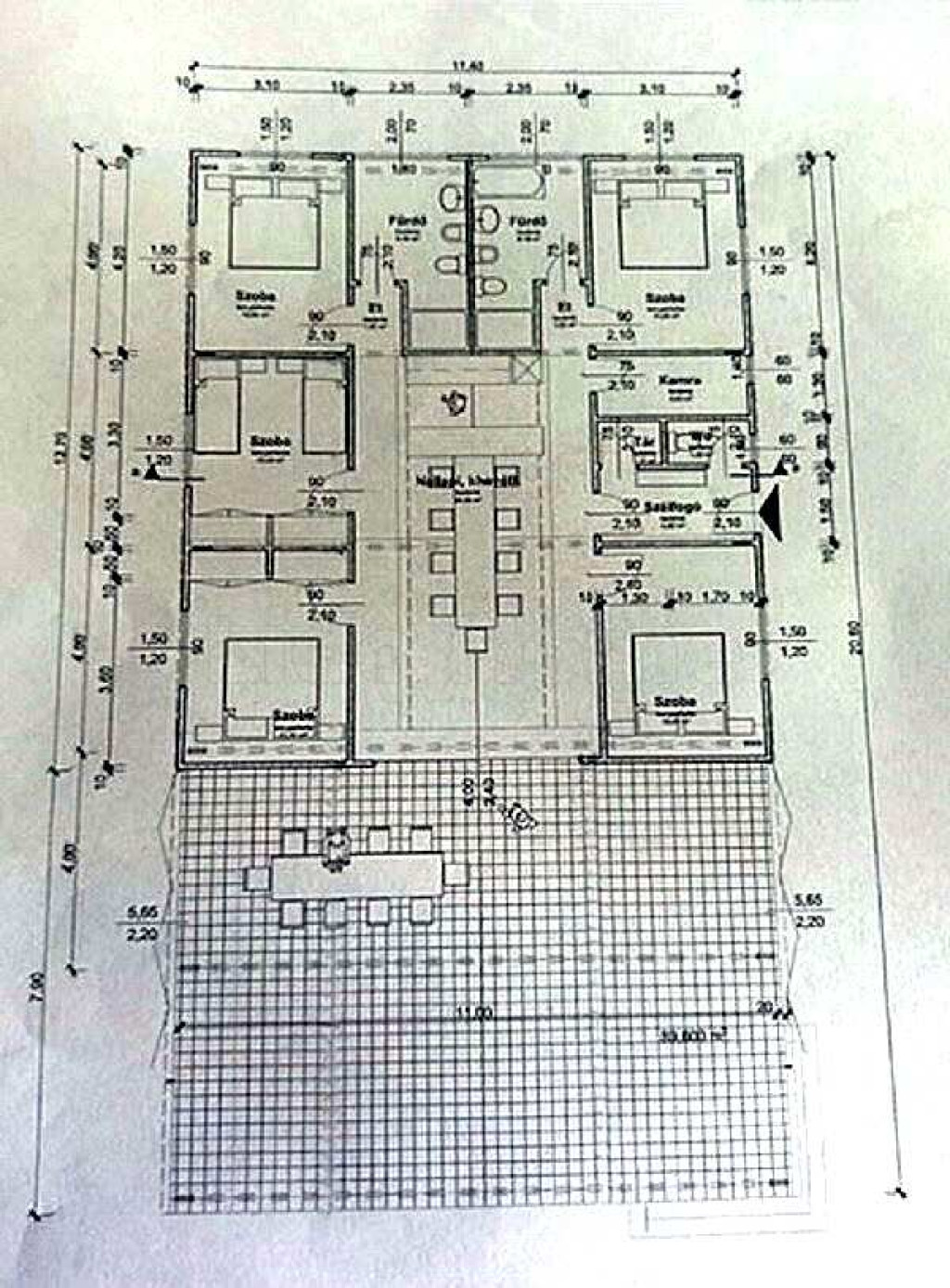 -Előszoba, háztartási helyiség, mellékhelyiség, 40 m2-es amerikai konyhás nappali-étkező, kamra, 5 ideális méretű szoba, két tágas fürdőszoba ( egyik zuhanyzós, a másik kádas/zuhanyzós kivitelben készült).