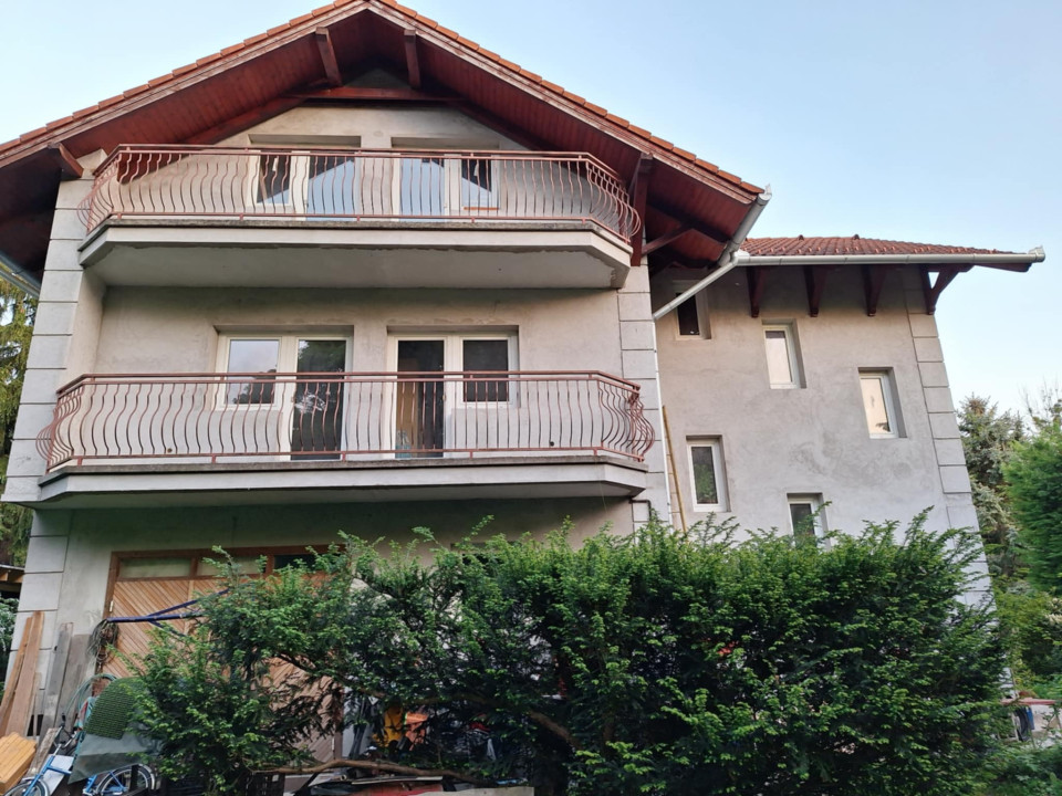 Balatonföldváron csendes madárcsicsergős üdülőövezetben a főút és a Balaton között a keleti strandtól 5 perces séta távolságra 1106 nm-es összközműves két utcára nyíló telken egy eredetileg panziónak épült 3 szintes családi ház összesen 394 nm-es+ 50 nm. erkély és teraszos hasznos térrel.