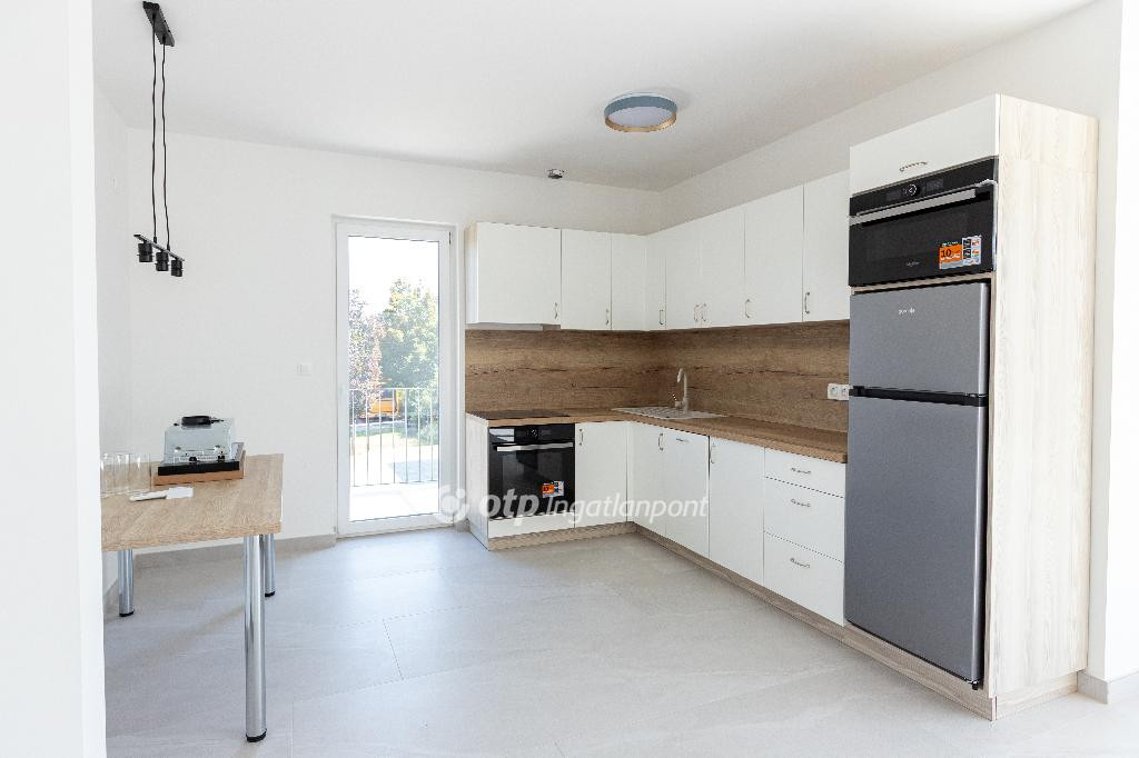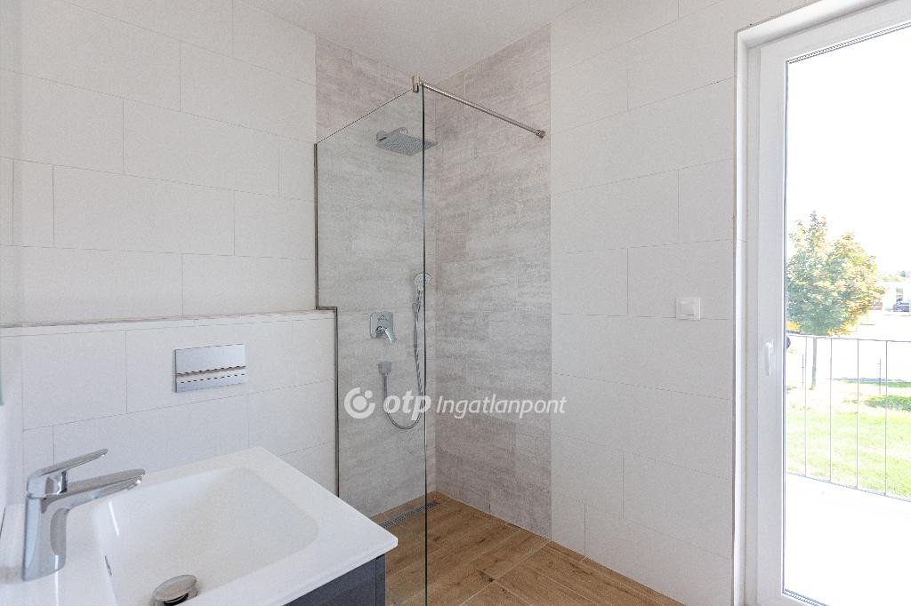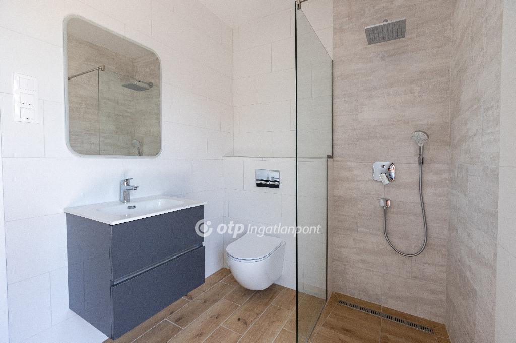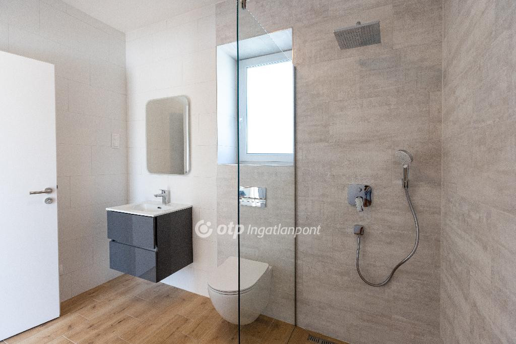 Az emeleten: konyha-nappali étkező, 2 hálószoba, külön wc, zuhanyzós fürdő és 3 db erkély található. Igény szerint, minimális ráfordítással az emeleti konyhából plusz egy hálószoba kialakítható.