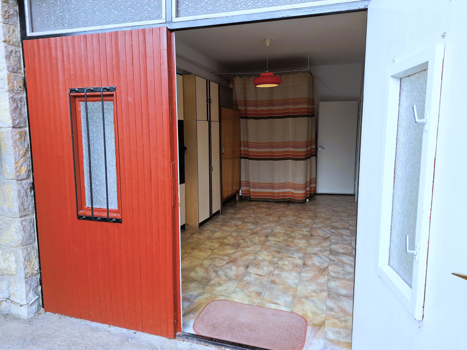 A 70-es években épült ingatlan alsó szintjén tágas szoba, konyha-étkező, fürdőszoba, közlekedő, lépcsőház és garázs lett kialakítva.