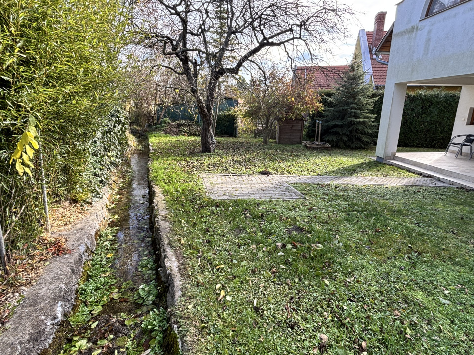 A házhoz tartozó kert gondozott, AUTOMATA ÖNTÖZŐRENDSZERREL ELLÁTOTT.