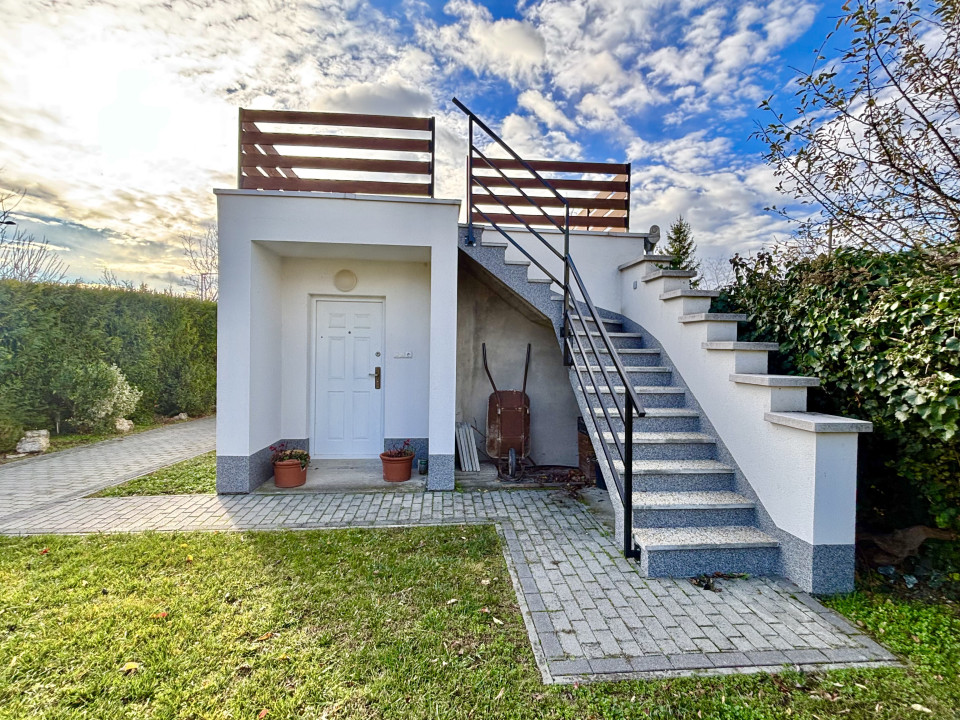 Az épülethez egy KÜLÖNÁLLÓ, 34 nm nagyságú GARÁZS is tartozik, melynek tetején egy PANORÁMÁS, TETŐTERASZ található, ahonnan CSODÁLATOS kilátás nyílik a TIHANYI-FÉLSZIGETRE.
