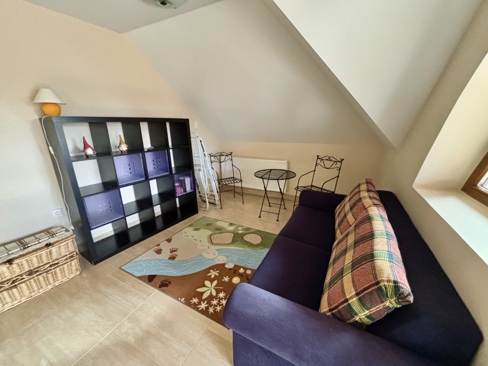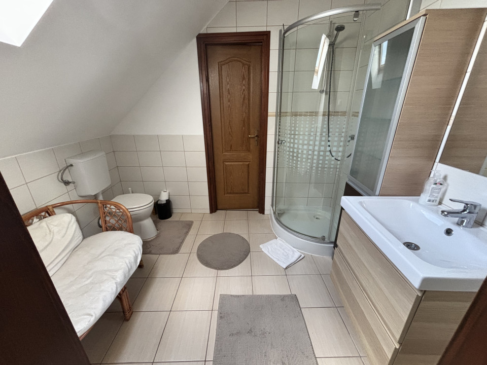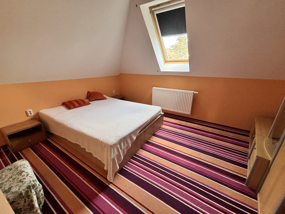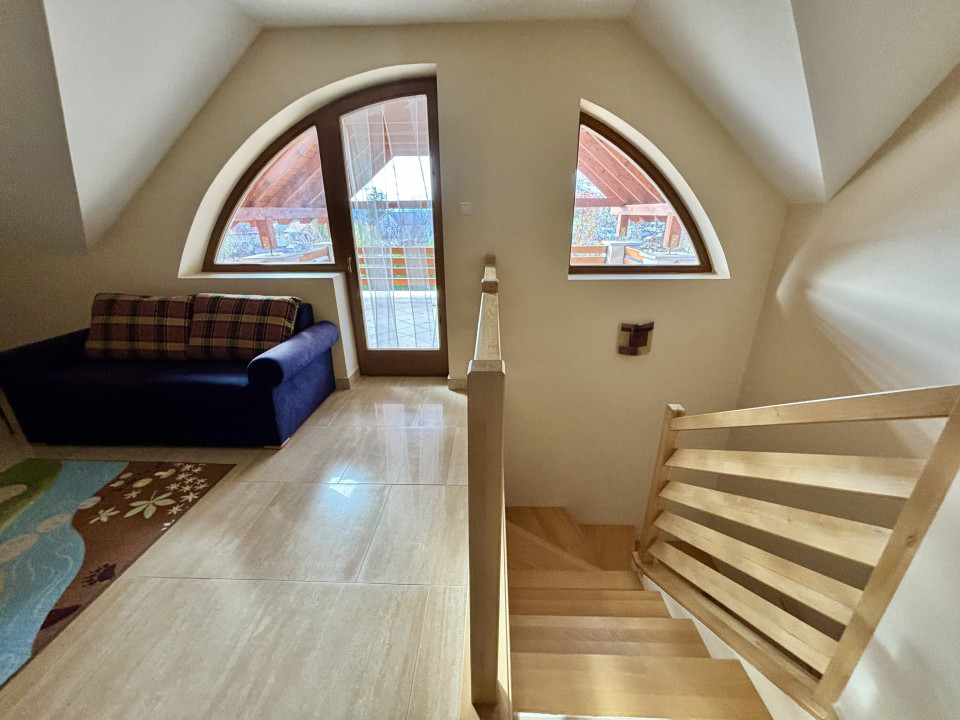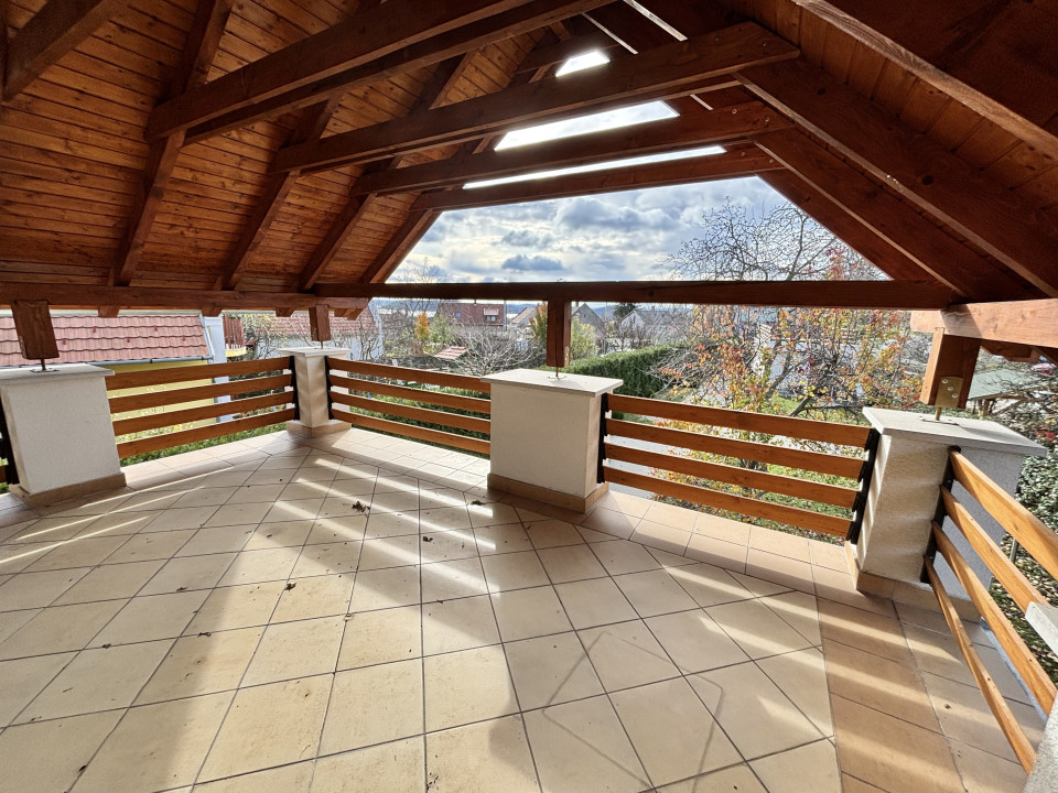 Az emeleten továbbbi 4 TÁGAS szoba, 2 fürdőszoba és egy kisebb nappali került kialakításra, itt egy PANORÁMÁS, FEDETT ERKÉLY is helyet kapott, mely 24 nm nagyságú.