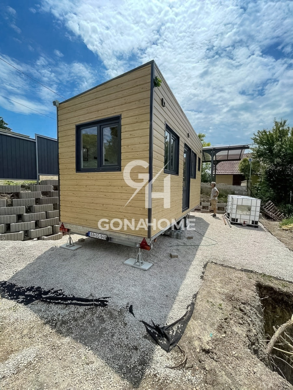 Tiny House eladó – rendszámos, trélerrel együtt, azonnal szállítható és használható.