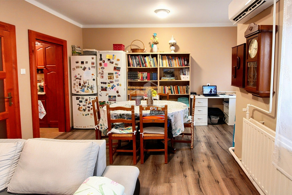 Képzeld el egy csendes zsákutca/köz hangulatát: ez a 82 m²-es sorház között kapott teljes körű felújítást modern megoldásokkal, praktikus elrendezéssel.