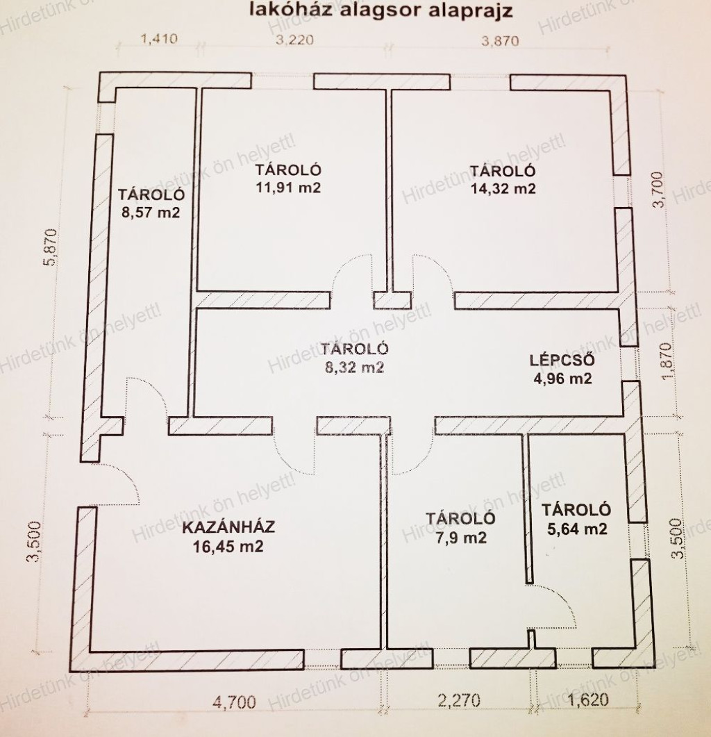 A lakótérben összesen 5 szoba, 2 konyha, 2 fürdő, 2 wc található, a tetőtérben 4 db hálófülke lett kialakítva, illetve az alagsorban még legalább 2 további szoba kialakítható.