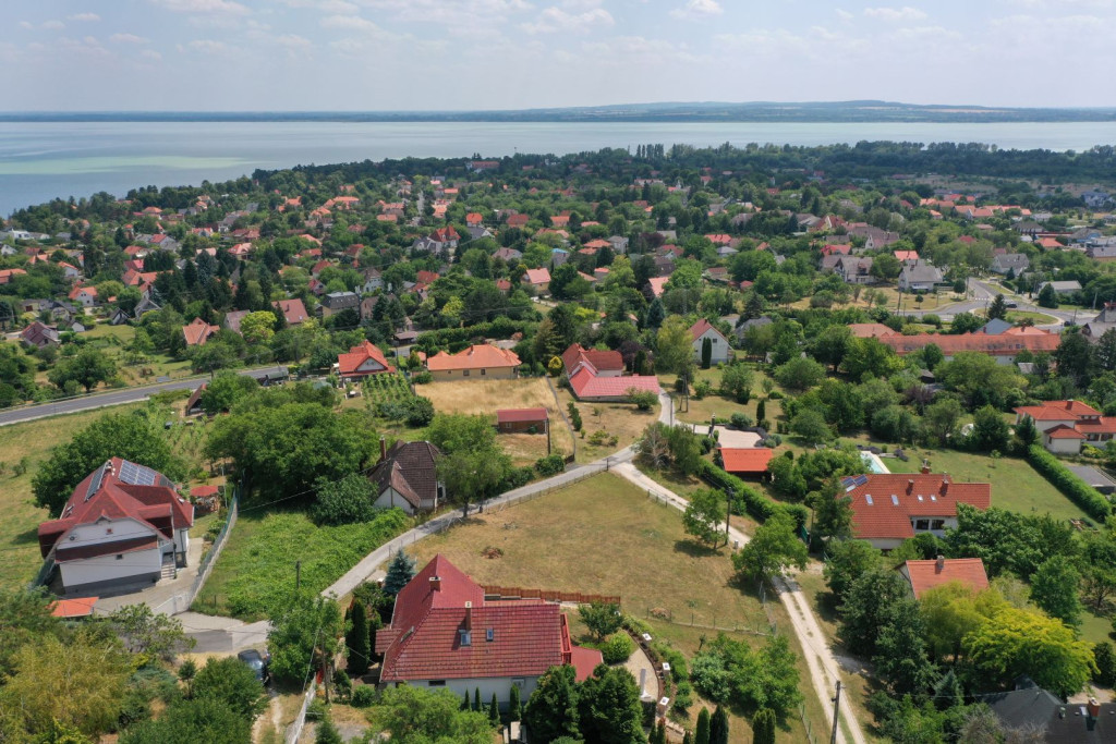Mérete: 930 m2. Ez a telek biztosítja, hogy a csodálatos körpanoráma a felső telekről örök maradjon. Egyedül álló kombináció ez a Balaton partján.