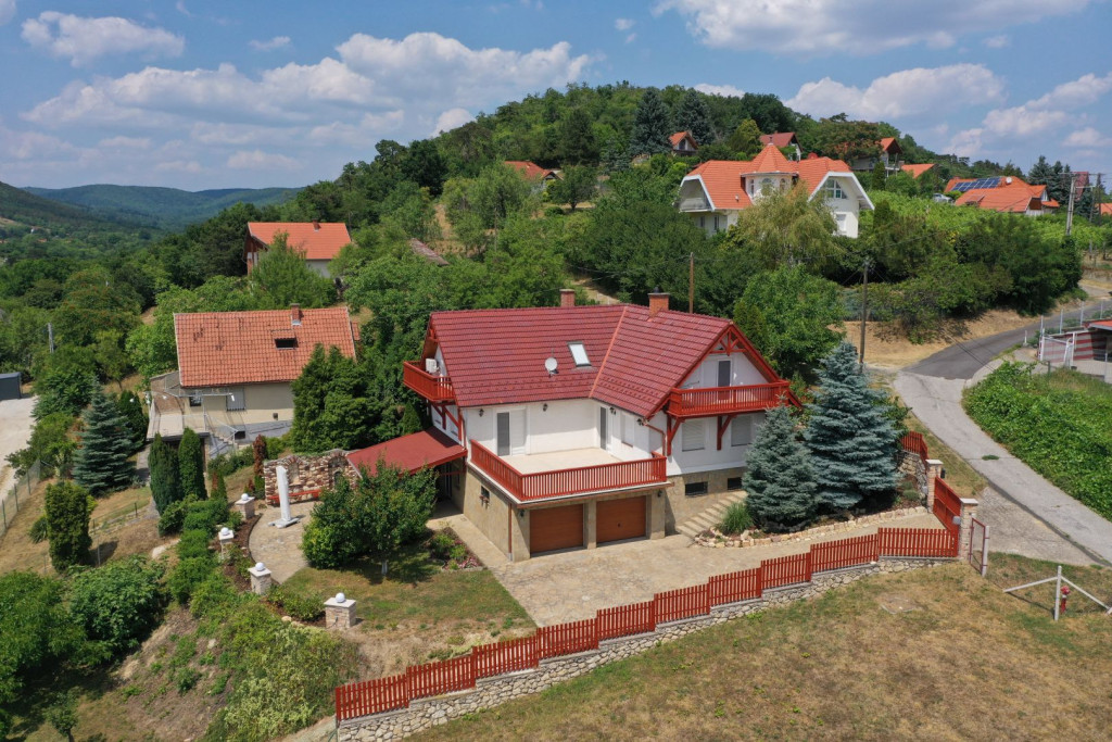Balatongyörök belterületén, a Felső Csetény utcában eladó egy gyönyörű körpanorámás három szintes ház.