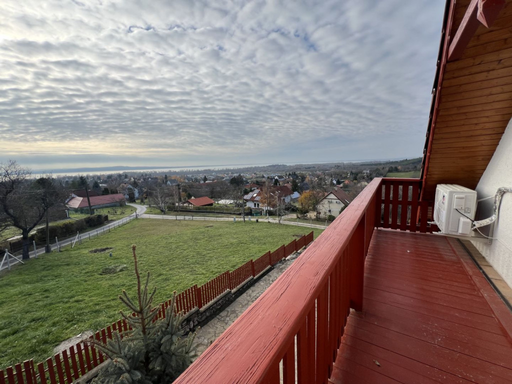 A terasz a dupla garázs felett helyezkedik el, s innen a korábban említett látvány tárul a pihenni, gyönyörködni vágyó elé. A naplemente csodás innen nézve. Jobbról a csodálatos völgy, balról a Balaton látványa tárul elénk szinte teljes körpanorámában. A házat természetvédelmi terület öleli körbe, amely csodás tiszta levegő minőséget biztosít, egyedülállóan a Balaton-felvidéken.