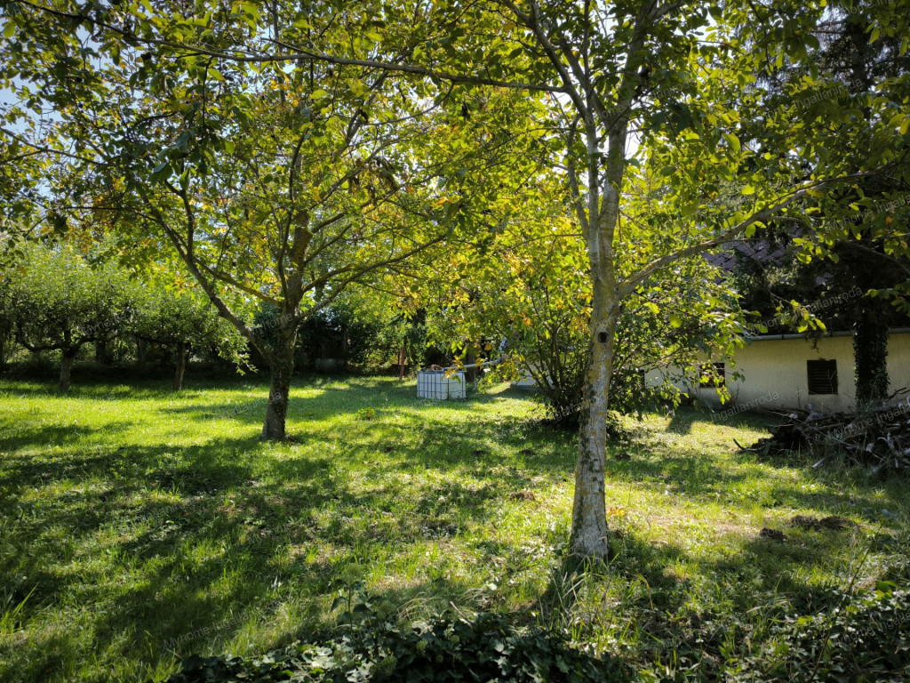 -a ház a kert közepén található, igy van előkert és hátsó udvar is , 6-7 termő diófával, gyümölcsfákkal,