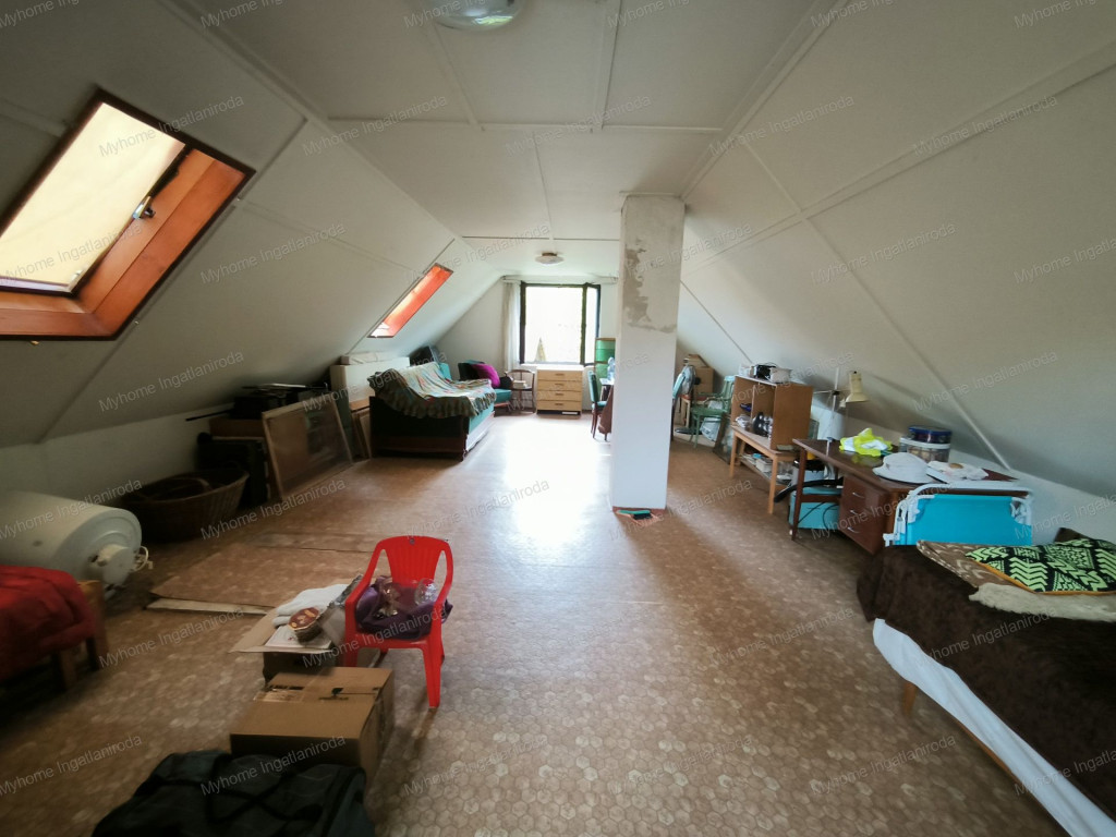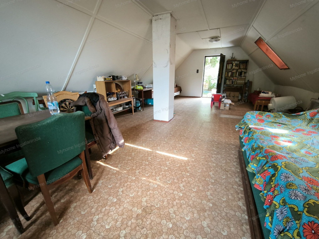 -felsőszínt kb. 30 m2: külső lépcső, ( a belső lépcső még nem lett kialakítva, de a az előkészítés megtörtént, azaz a kétszínt között belülről egy lezárt nyílás van (lásd. fotók), egy tágas tetőtér, amely több helyiségre is osztható,