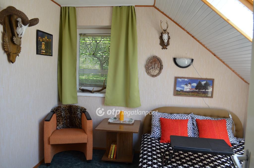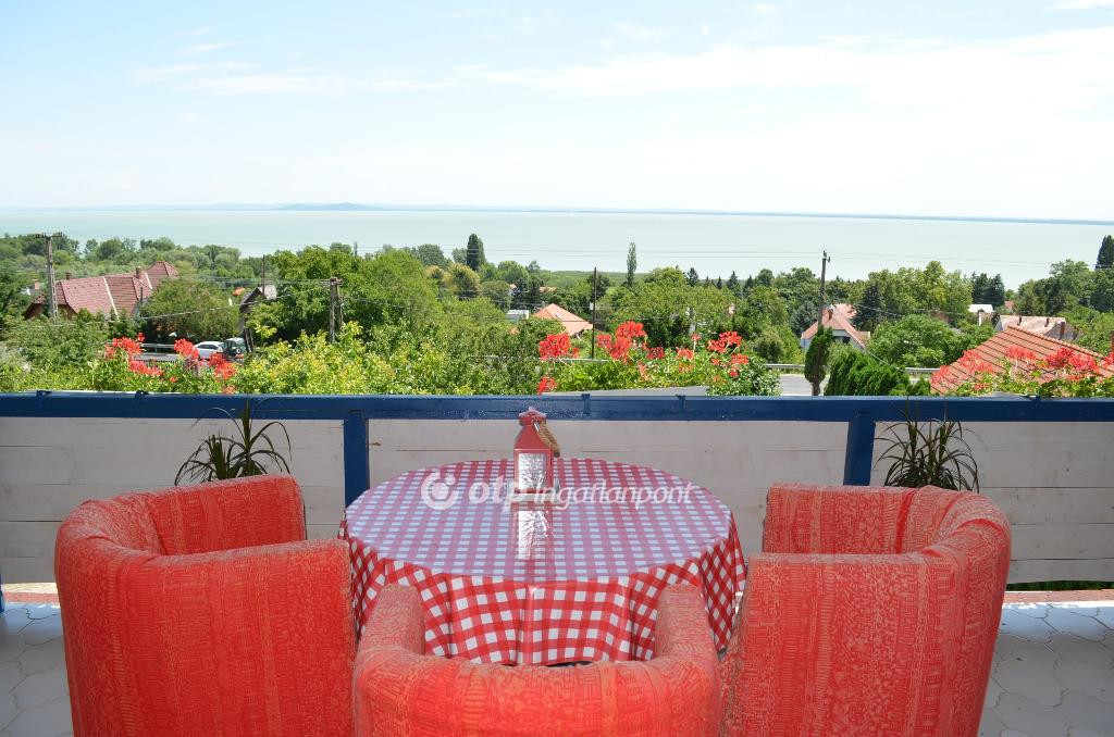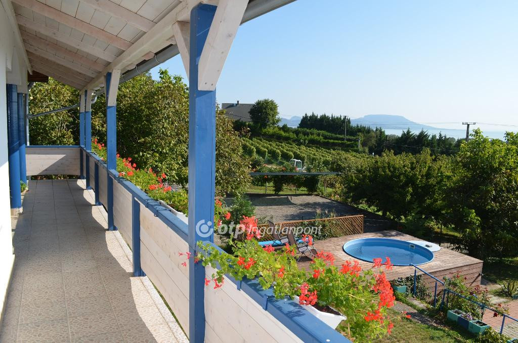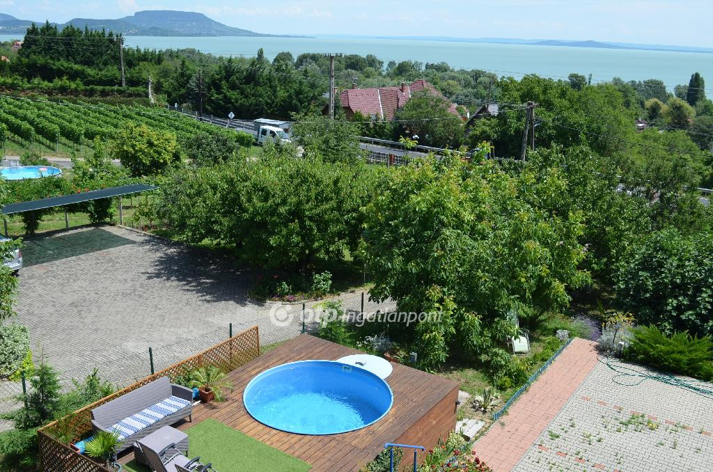 Az ingatlan felső szintjén található 6 szoba található valamennyi fürdőszobával ellátott így kiválóan alkalmas vendégfogadás céljára illetve kialakításra került egy kis konyha reggeliző térrel is. Az ingatlan keleti oldalán érhető el egy nagy terasz ahonnét csodálatos panoráma tárul elénk a Balatonra,Badacsonyra és a Szigligeti várra is. A nyugati oldalon egy árnyasabb terasz lett kialakítva ami felett már az erdő és hegy magasodik.