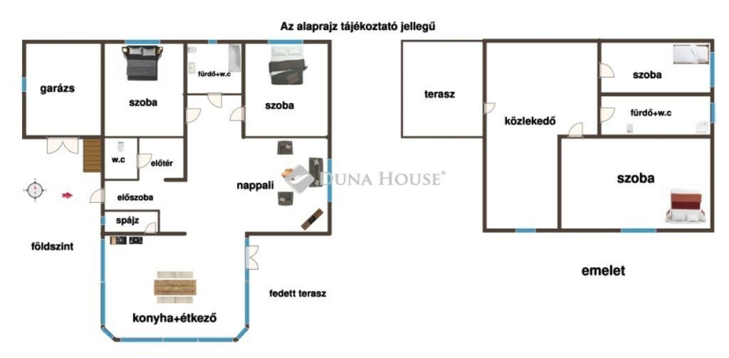 Az ingatlan két szintes, átgondolt elrendezéssel és világos terekkel rendelkezik.