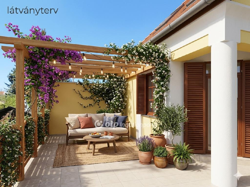 Panorámás terasz: A 37 m2-es terasz pergola-rendszerrel és kényelmes kültéri bútorokkal igazi közösségi térré válhat.