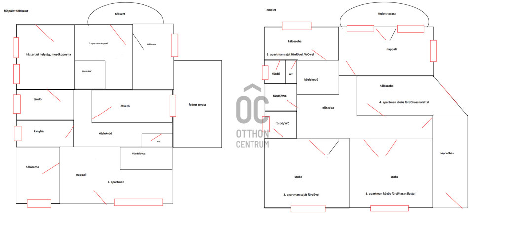- egy udvarban található az egykori villa és egy különálló apartmanház ( átépítése folyamatban)