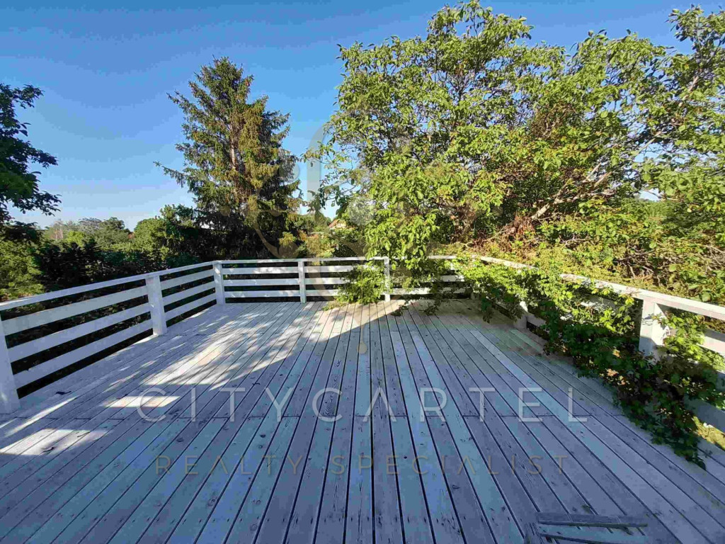 A felső szint nagy teraszáról csodás kilátás nyílik a tóra, a kertre és a környező növényzetre – tökéletes hely a reggeli kávéhoz vagy esti beszélgetésekhez.