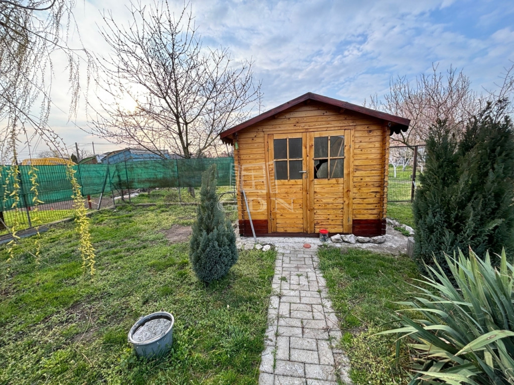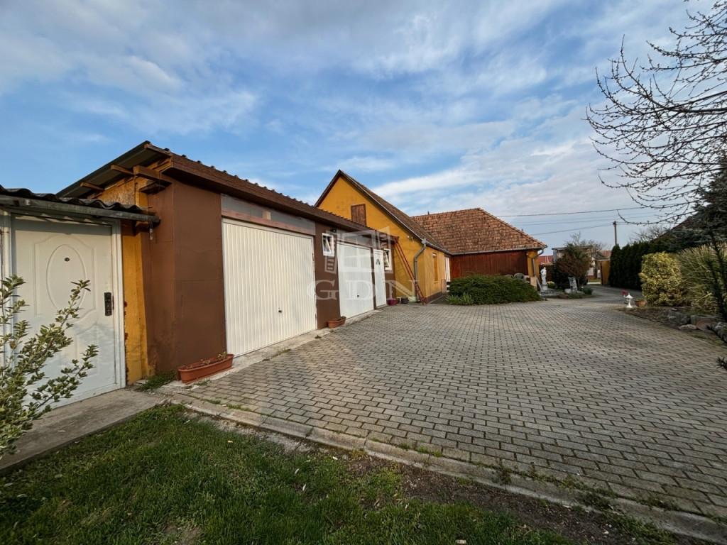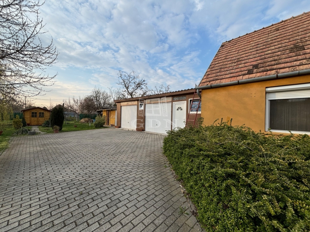 A ház mellett kétbeállós garázs, nyárikonyha, kerti faház, és fatároló helyezkedik el . Az udvar egy része térkövezett, egy része parkosított, a kertben pedig rengeteg termő gyümölcsfa található.