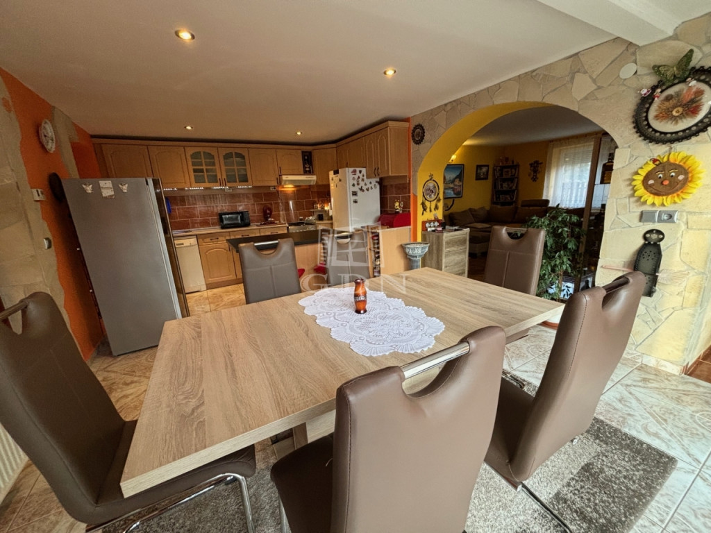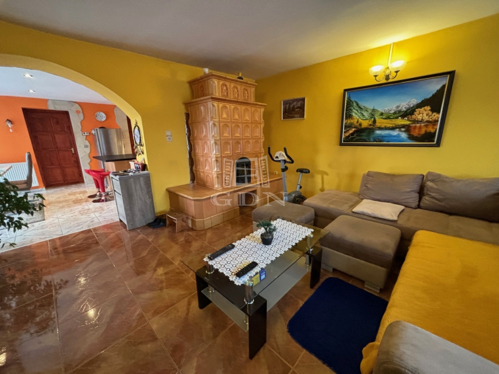A fűtést gázkazán biztosítja lapradiátorokon keresztül, valamint a nappaliban egy cserépkályha is helyet kapott.