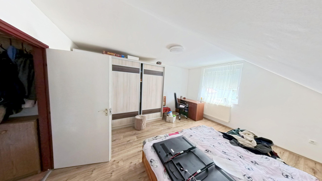 A két utcáról is megközelíthető ingatlanon egy TÉGLÁBÓL épült ház van, mely egy földszinti és egy tetőtéri lakórészből áll. Mindkét lakórész külön mérőórákkal van ellátva. Az összesen 265 m2-es hasznos területű ház lakórészenként 132 m2 hasznos lakóterülettel rendelkezik. A házra jellemző a TÉNYLEG TÁGAS, NAGY TEREK, A RENDKÍVÜL VILÁGOS HELYISÉGEK. Mindegyik szinten 3 hálószoba + nappali-étkező, fürdőszoba és konyha található. A lakórészekbe KÜLÖN KÉT BEJÁRATON keresztül elérhető lépcsőházból juthatunk be. A hőszigetelt ablakokkal ellátott lépcsőház egy méretes előteret is magában foglal.