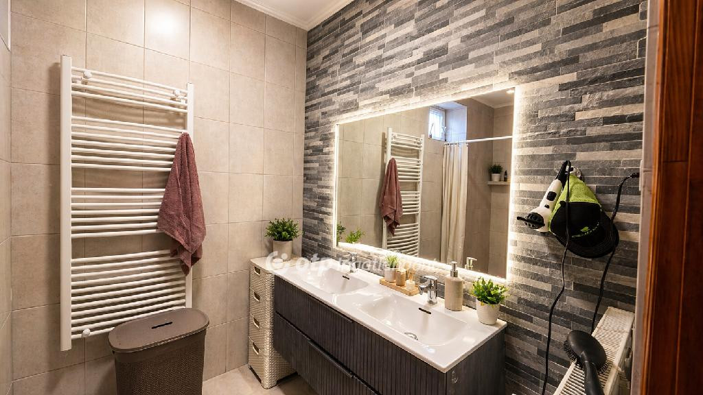 modern fürdőszoba és külön WC