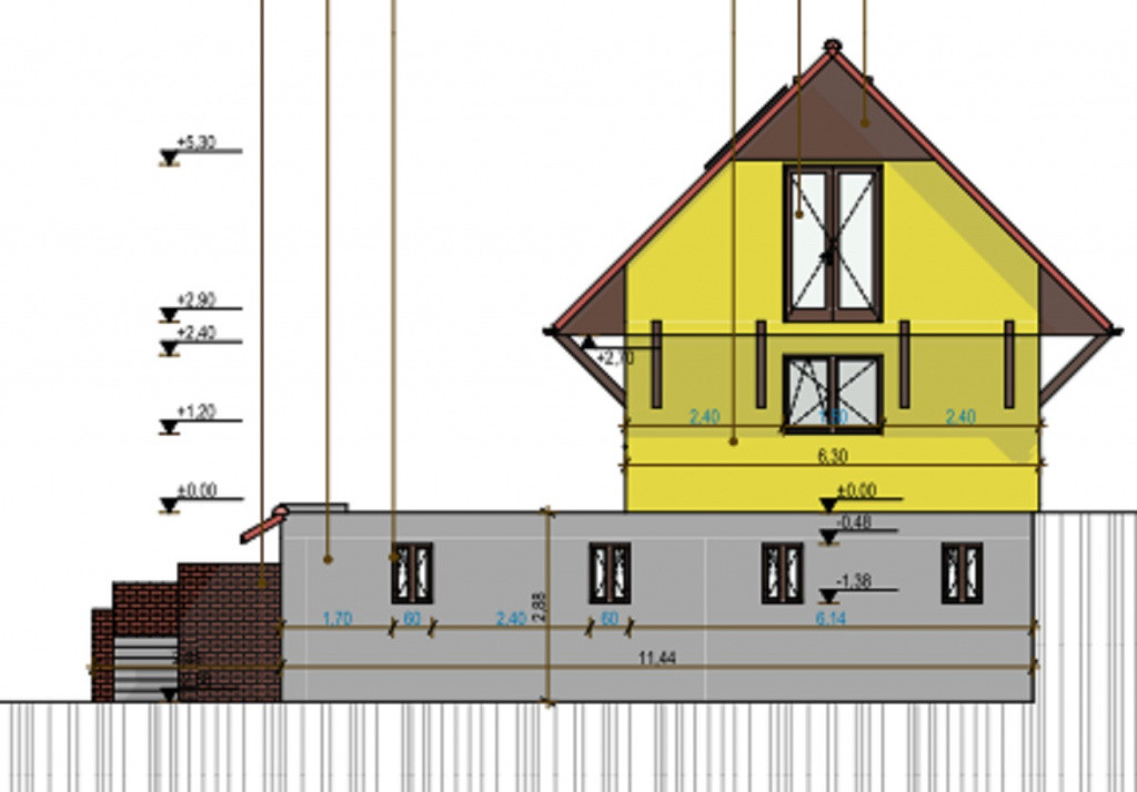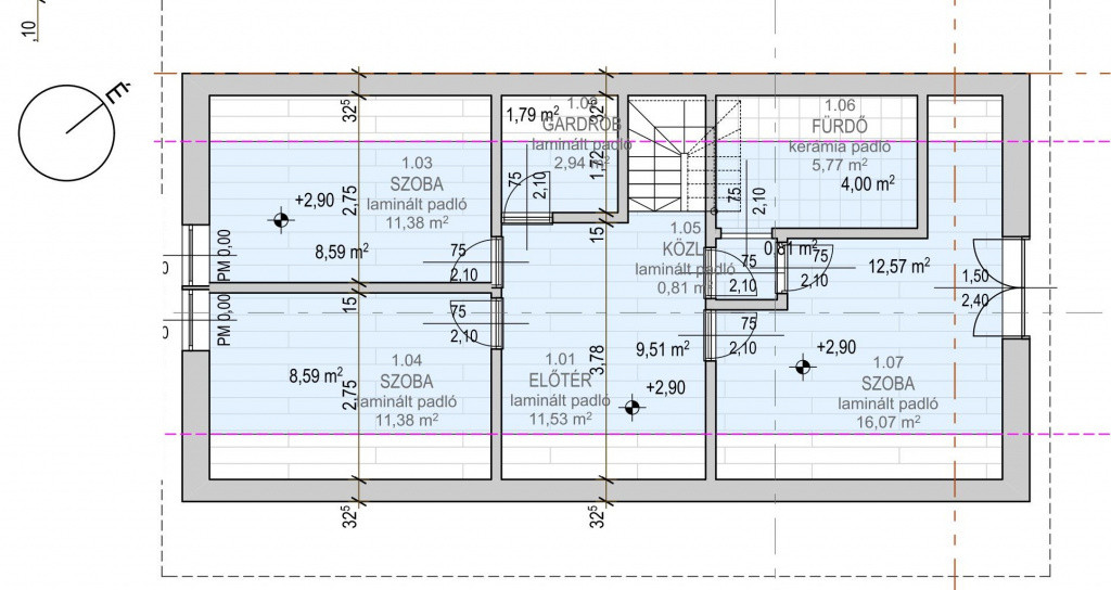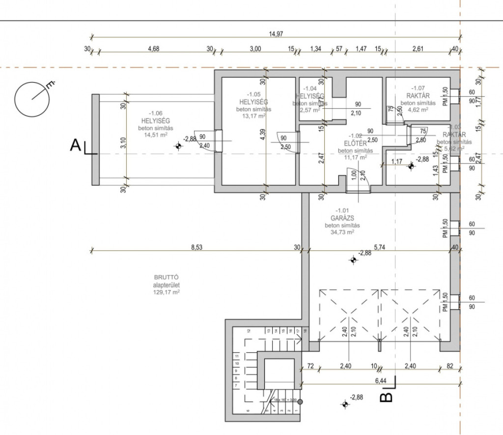 • Pince szint (110 m²) – 5 szoba + mosdó + garázs