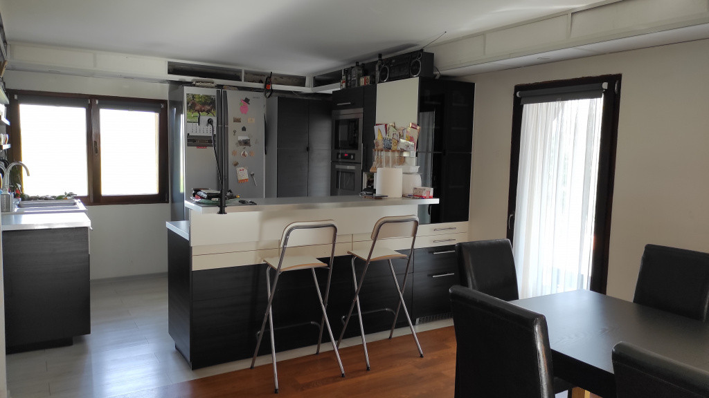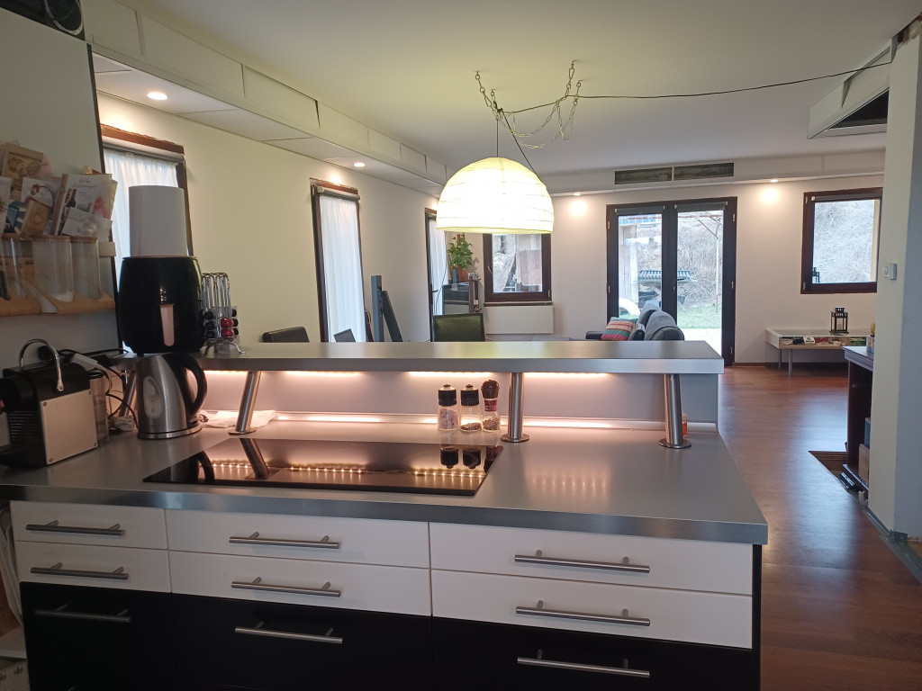 • Földszint (60 m²) – nappali + amerikai konyha + mosdó és WC