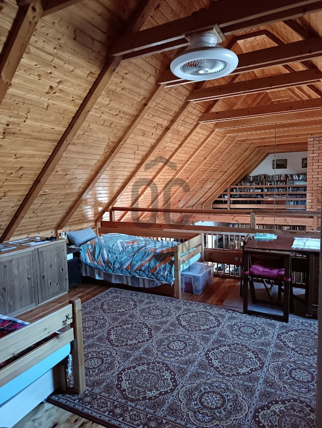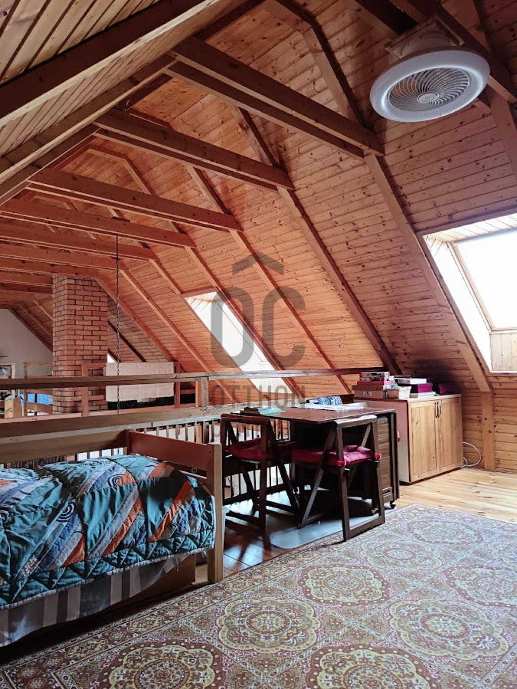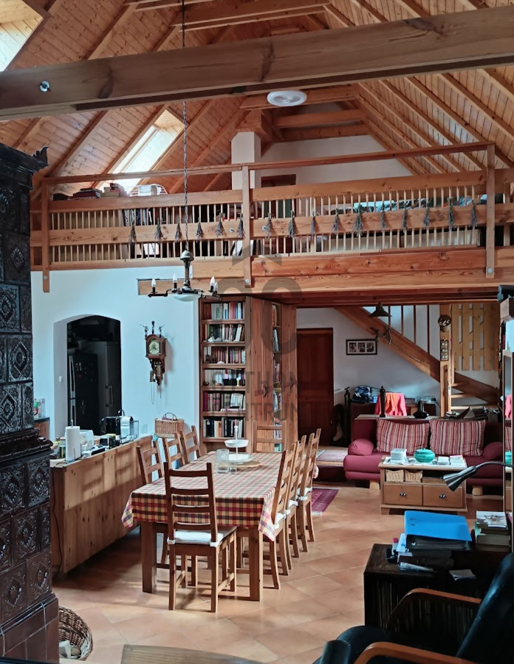 Egy 35 m2-es önálló apartman van benne külön bejárattal továbbá még két hálószoba a galérián, két konyha, étkező, nappali szoba és három fürdőszoba valamint egy kamra.