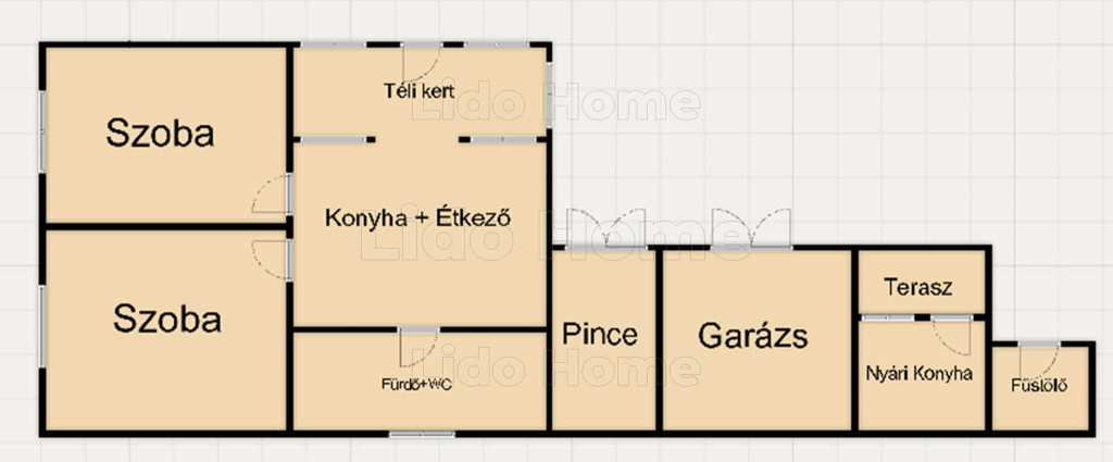 A házban 2 szoba, konyha, fürdő + WC, tágas télikert, amely egész évben kellemes térként szolgál külön nyári konyha, pince, garázs.