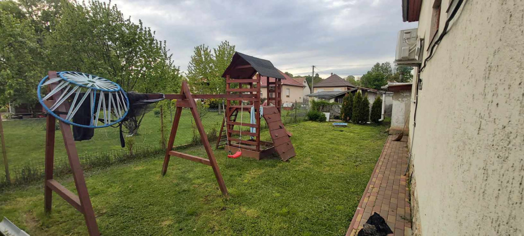 Az ingatlan 464 m2es telken helyezkedik el, melyen egy garázs is helyet kapott. Az udvaron egy gyermekek számára épített csúszda is megtalálható.